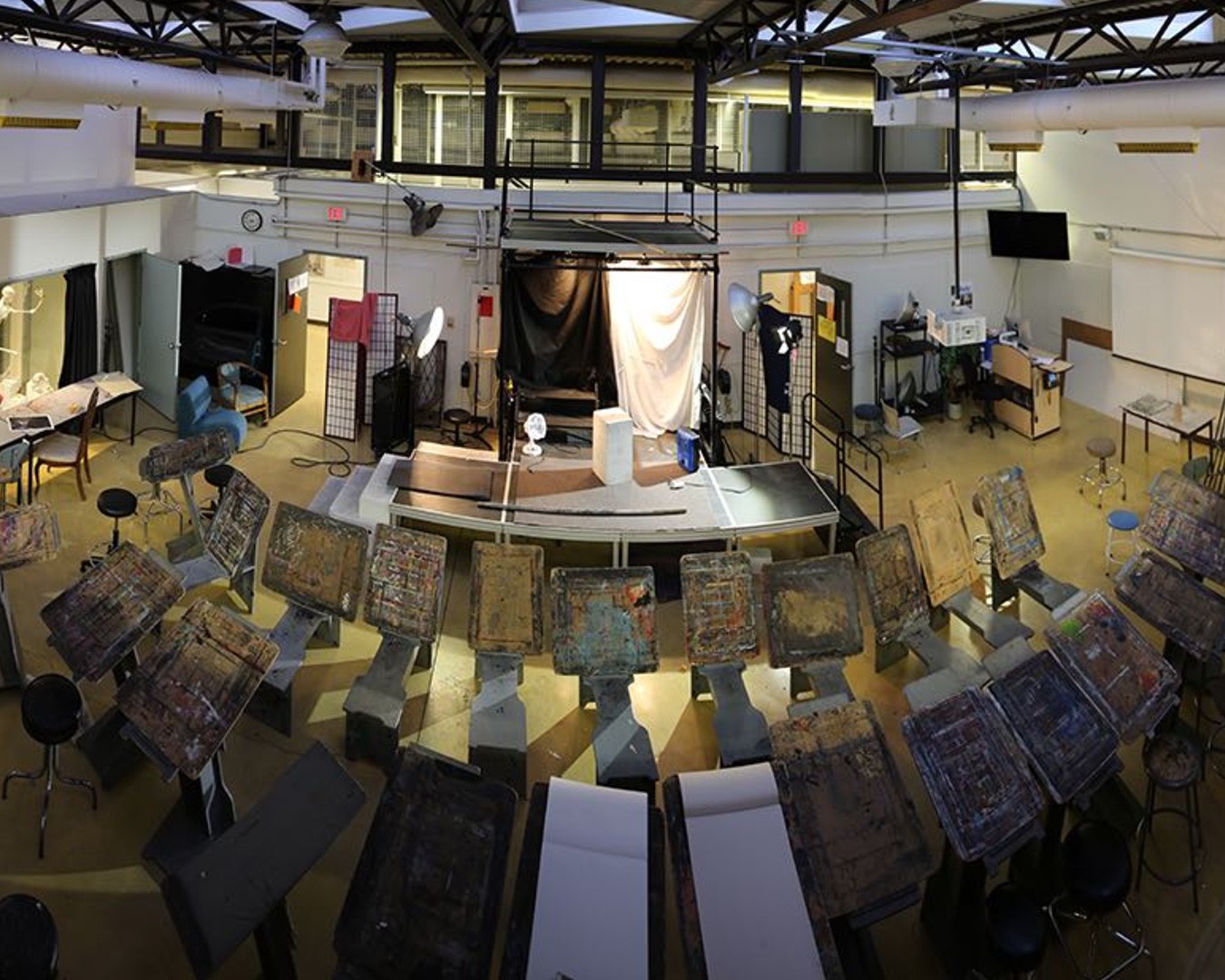 27‑foot ceilings, natural light, dedicated drawing and painting studios, and multi‑level model stands.