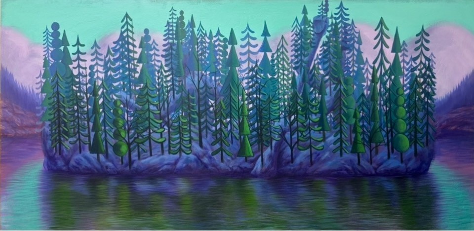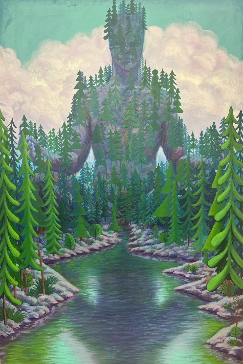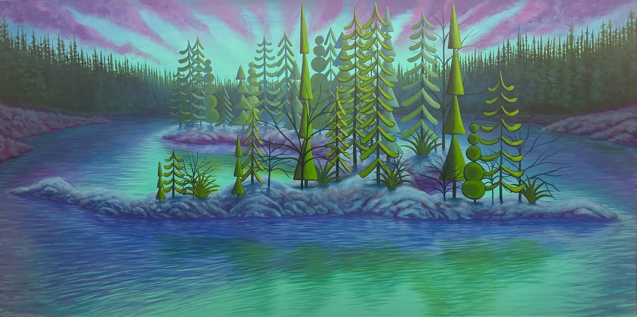 Life-size acrylic paintings on panels reflecting the theme of the body as a living landscape shaped by Indigenous knowledge, sport, movement, and clean living. In my illustrations, movement (mindfulness, paddling, swimming) is a form of visual reclamation and reconnection with our biological landscape. I aim to tell a story of how maintaining a healthy body and mind through a connection with nature is our ancestral birthright to a long life.
