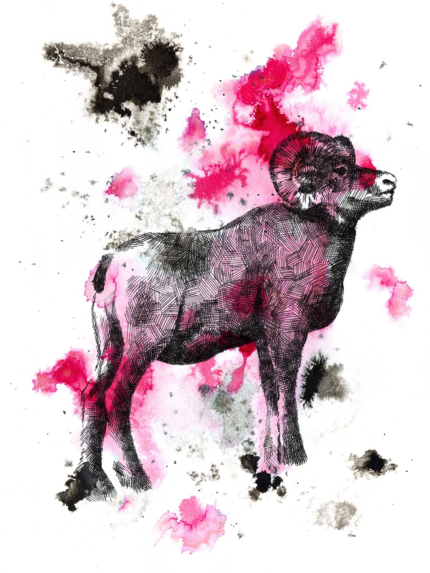 A series of illustrations that explores technical and expressive uses of ink, with the theme of the zodiac animals.