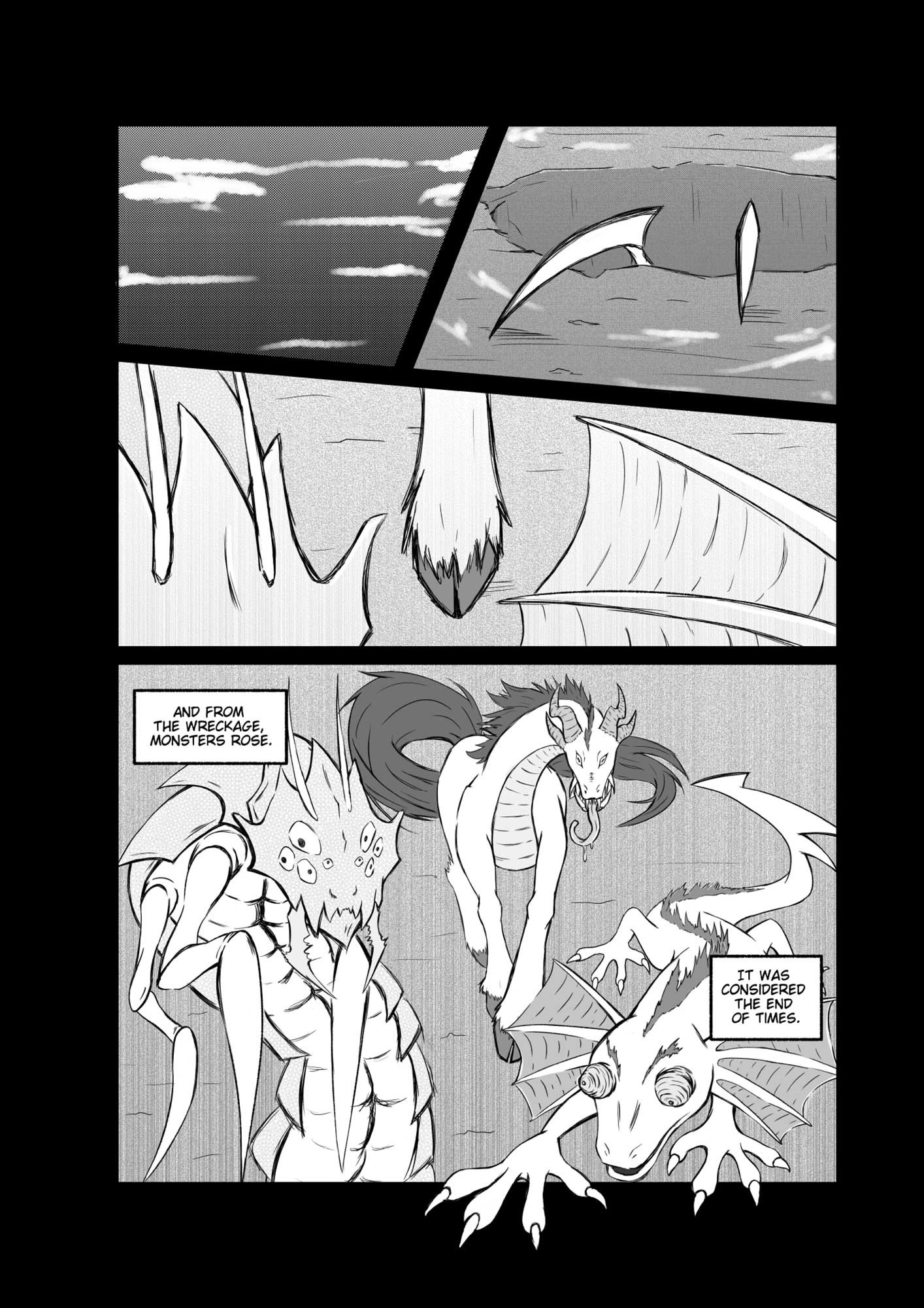 A fantasy action comic about a hero fighting monsters.