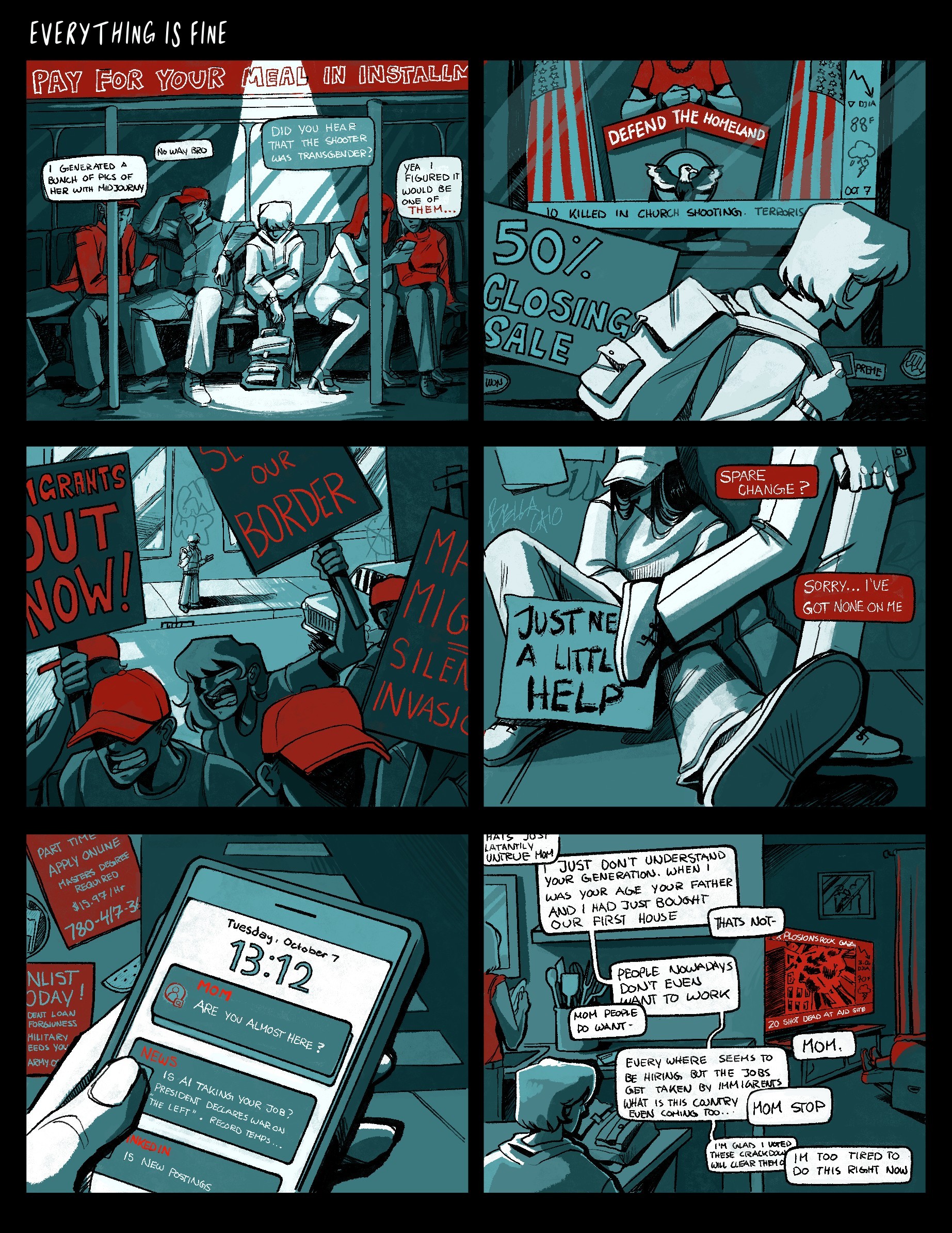 A short six-panel comic about the state of the world and the anxiety that accompanies it.