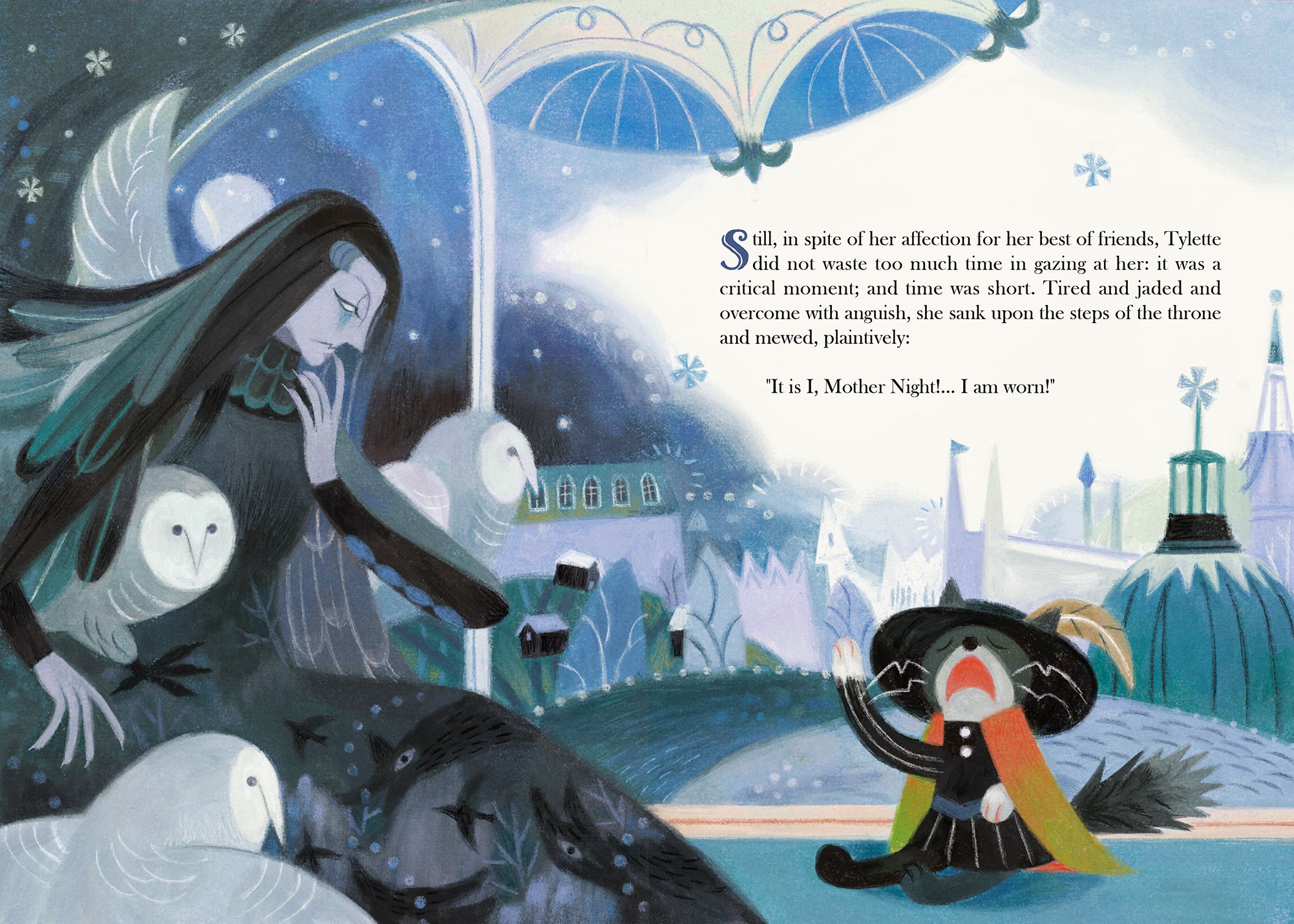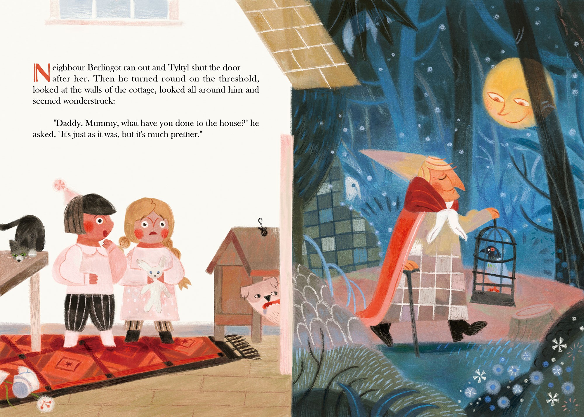 A series of book illustrations for Georgette Leblanc’s version of the classic play The Blue Bird. The story follows Tyltyl and Mytyl’s adventure in finding the magical blue bird upon a fairy’s request.