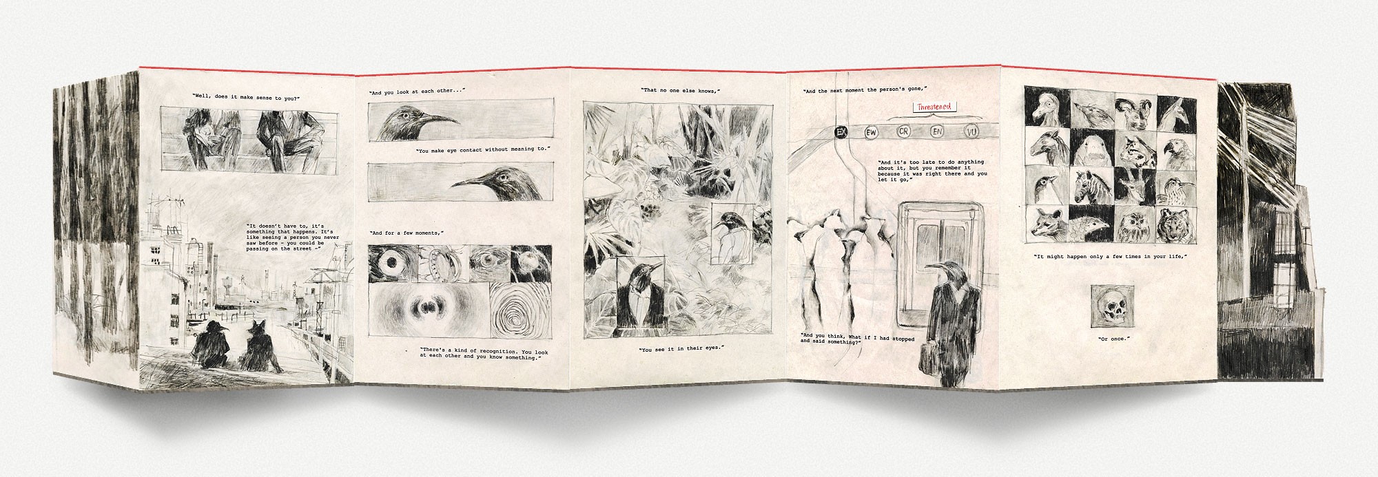 A short sequential narrative inspired by the dialogue from the movie of the same name. A reimagination of the scene from the perspective of extinct animals.