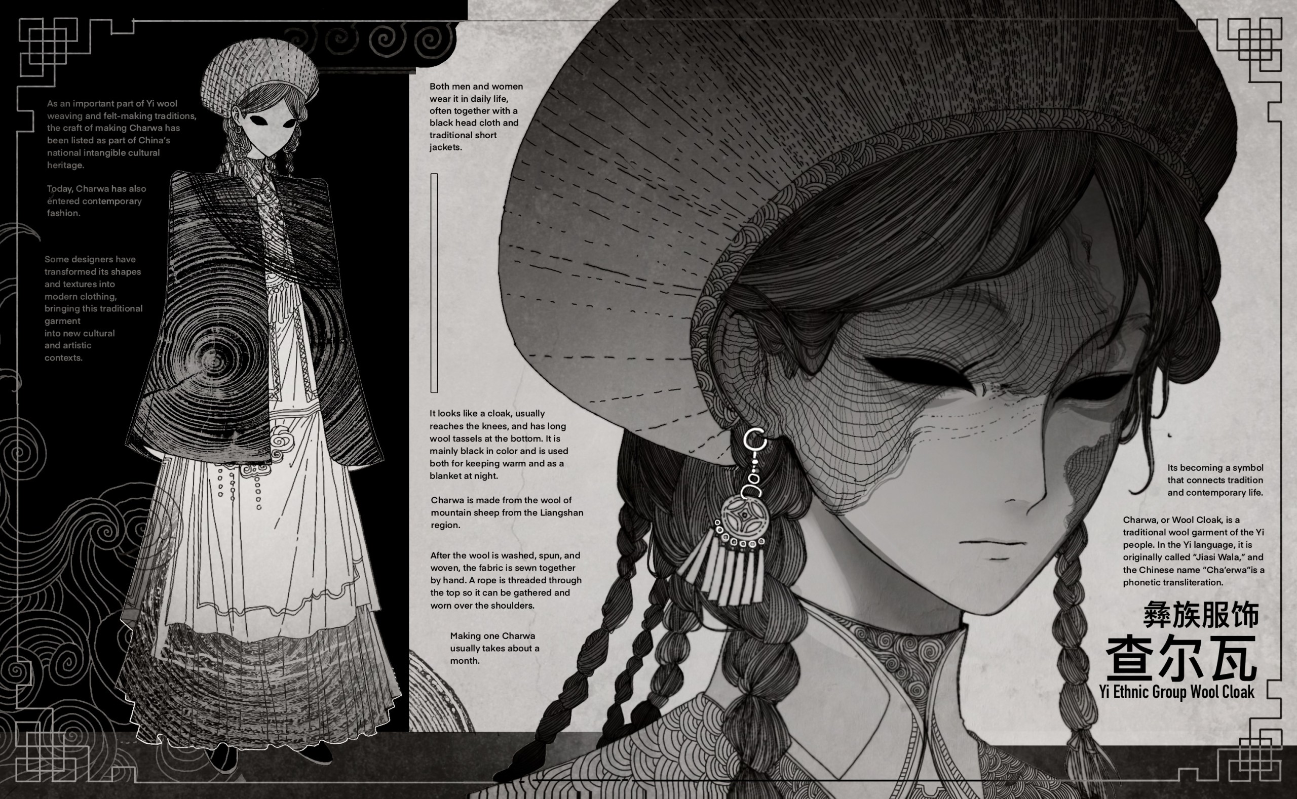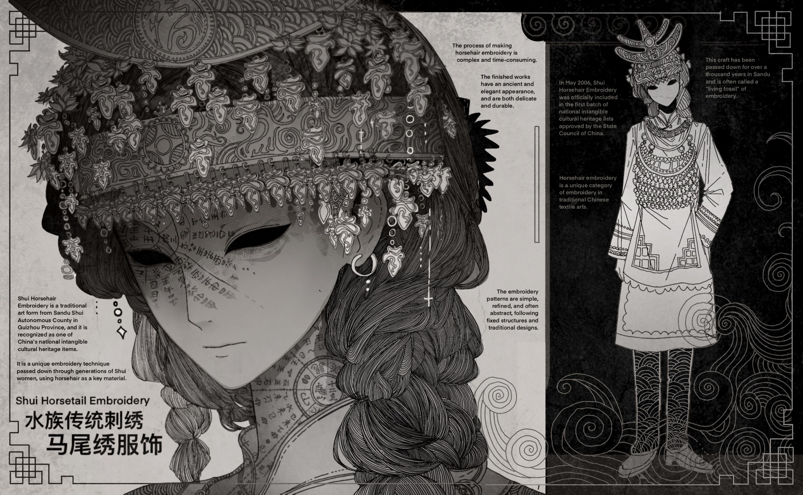 Ruoxi Wu is an illustrator who draws on cultural references and research to create images that feel quiet, detailed, and emotionally heavy. Her work often focuses on traditional elements, symbols, and everyday fragments of heritage, reinterpreted through a darker atmosphere and low-saturation colour palette. She is interested in how imagery can carry meaning without being overly direct, using composition, texture, and subtle narrative to guide how a viewer feels and reads a piece.